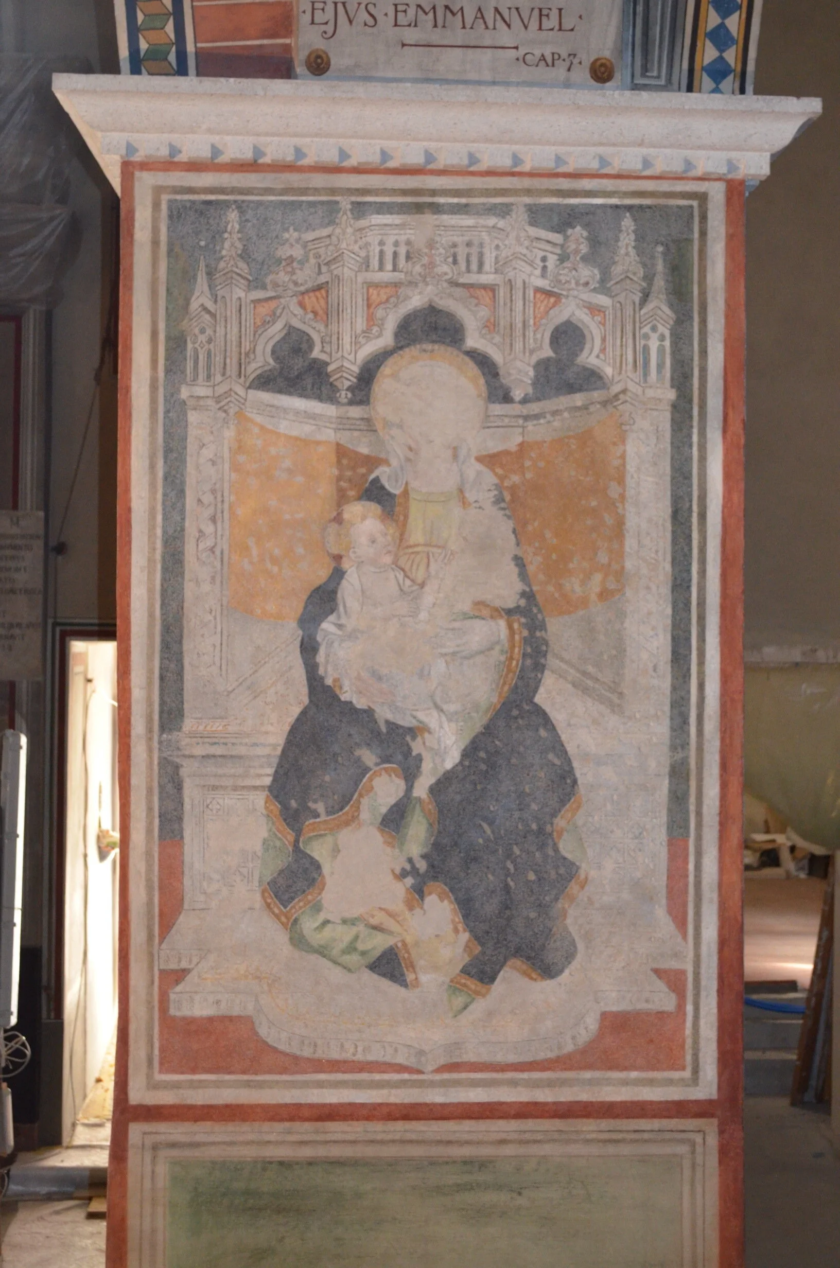 Conservazione e restauro degli affreschi medioevali e dei finti affreschi del 1910.